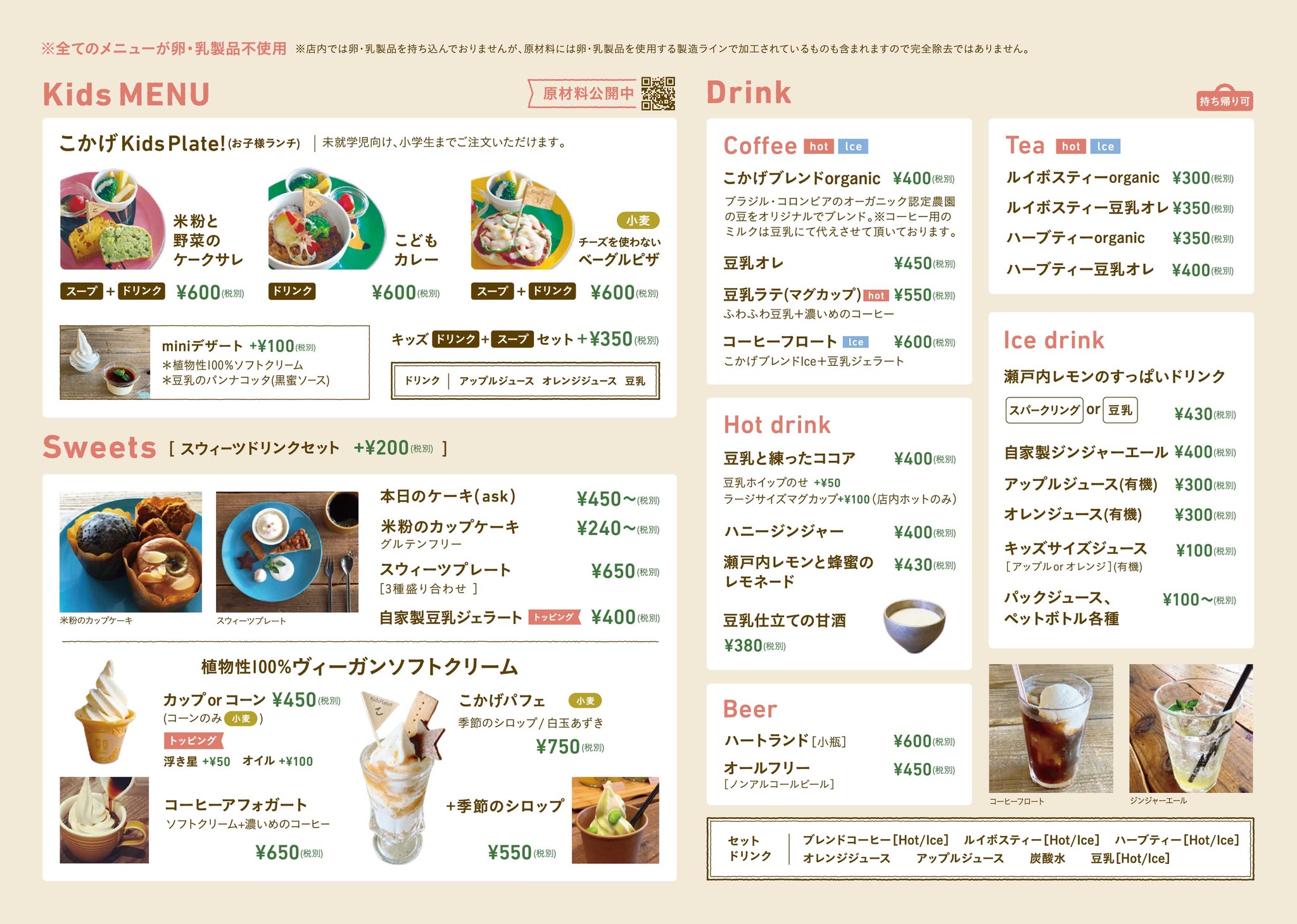 「卵・乳製品不使用」のコンセプトはもちろんそのままに、カフェのメニューをリニューアルしました!